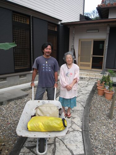 2009年夏、ジュンさんと伊東孝志兄のお母さん、幸子さん。加計呂麻島、西安室の孝志兄の実家にて。幸子さん、安らかにお眠りください。今までありがとうございました。