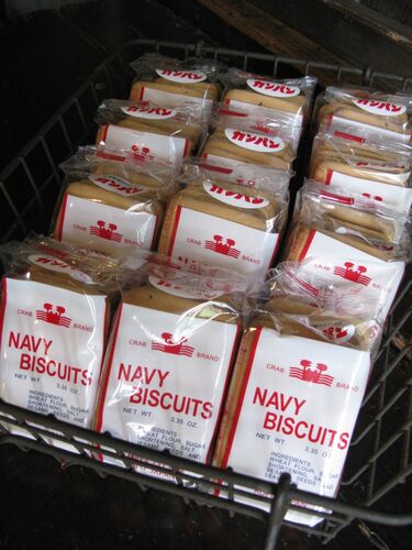 CRAB BRAND NAVY BISCUITS (5枚入り) お気に入りのカニヤのカンパン。日帰り長旅関係なく、お守りのように持って行っています。2014年のサバニ航海、上陸地のない伊良部〜座間味間(289km, 44時間)での食の柱はアルファ米とこれでした。日保ちはもちろん…
