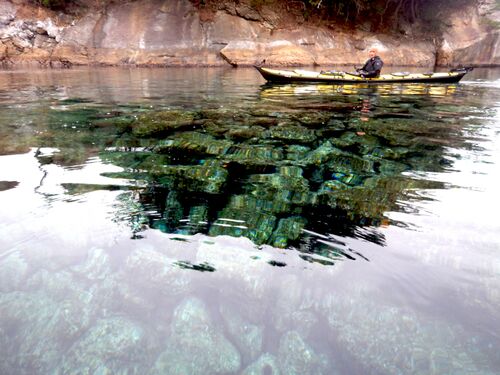 夏より水が蒼いです。カヤックで浮いていると夏よりキリッとした清涼感が感じられて気持ちがいいです。しかし静かな海から荒れている海への移行が早いので注意が必要です。ドライスーツの着用もお勧めします。
