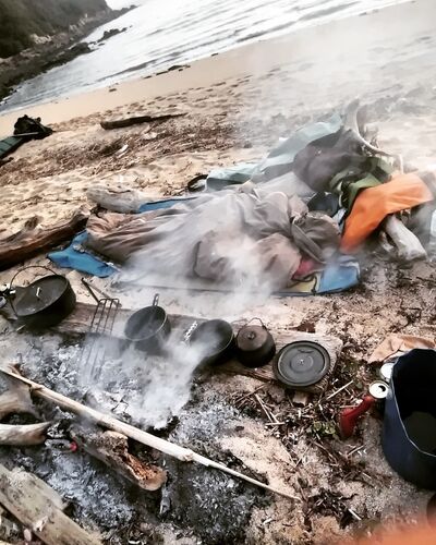 「火のそばで寝る」人の来ないビーチで過ごす焚き火の日々。シーカヤックを使った海旅ならではの世界観。 火を使った料理は本能を刺激します。焼いても煮ても何しても旨い!
